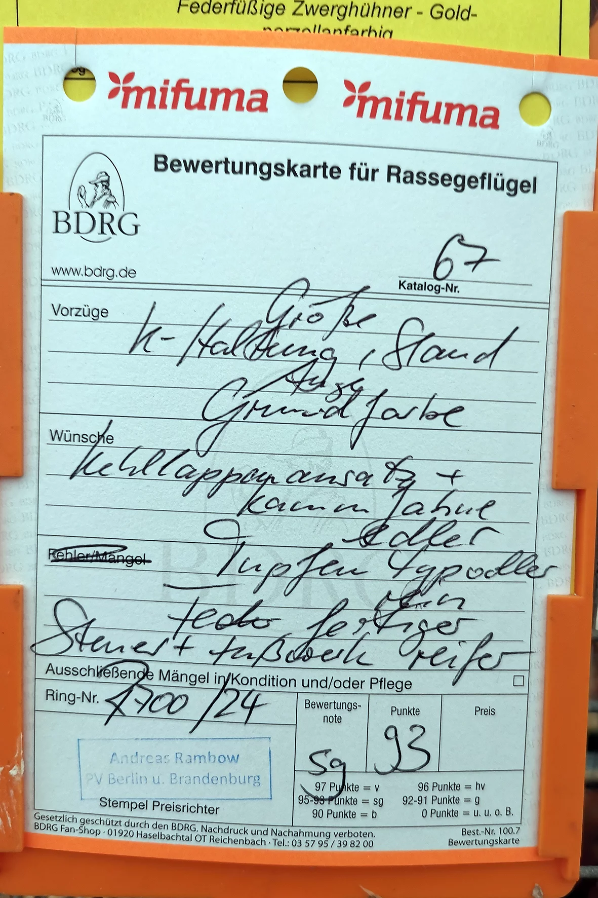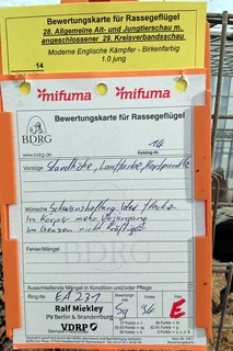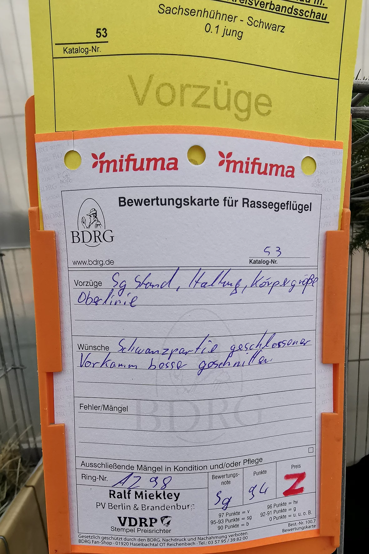 Mit knapp 70 gemeldeten Hühnern blieb die Beteiligung leicht hinter meinen Erwartungen zurück. Dennoch war das Ausstellungsgeschehen abwechslungsreich und zeigte deutlich, dass trotz der allgemeinen Herausforderungen im Zuchtwesen weiterhin Engagement und Leidenschaft vorhanden sind.