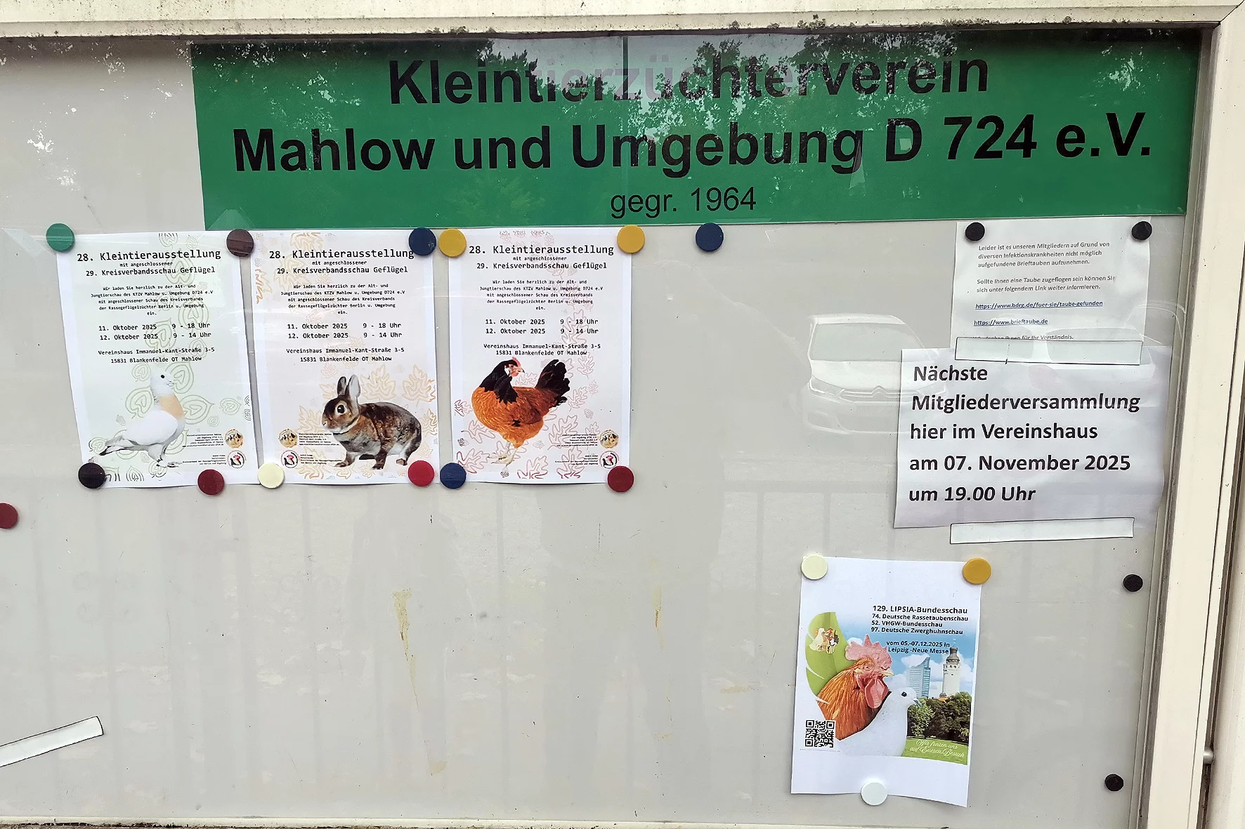Der Kleintierzuchtverein Mahlow lud in diesem Jahr zur 28. Alt- und Jungtierschau mit angeschlossener 29. Kreisverbandsschau Geflügel ein. Damit setzte der Verein seine inzwischen fest etablierte Tradition fort, Züchtern und Besuchern aus der Region eine ansprechende und fachlich solide Plattform zu bieten. Fast auf den Tag genau vor einem Jahr stand mein erster Besuch auf dem Programm – und so war es naheliegend, auch in diesem Jahr wieder den Weg nach Mahlow zu finden.