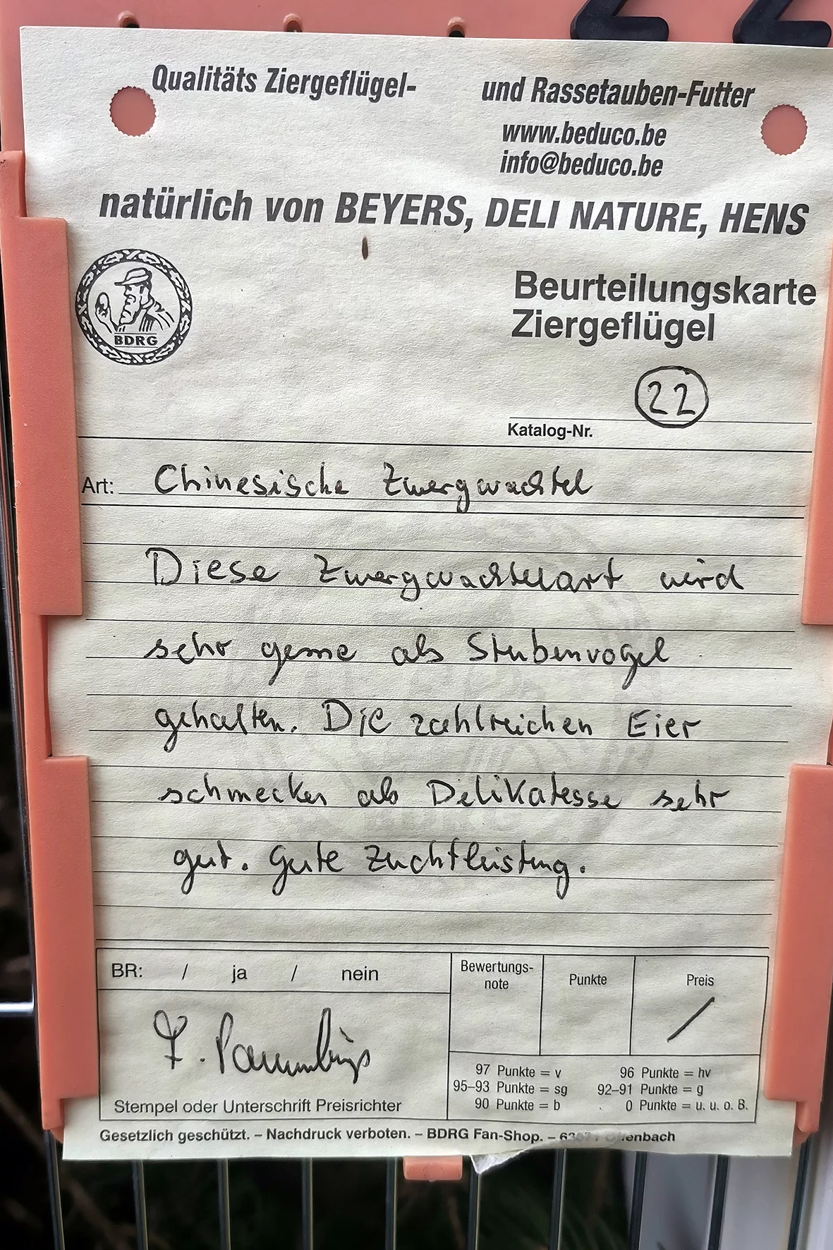 Zur Eröffnung der Schausaison verschlug es die Familie nach Berlin-Rudow, wo die 65. Sommerschau der Kleintierzüchtergruppe D34 stattfand. Schon beim Betreten des Ausstellungsgeländes im Vereinsgarten der Eigenheim- und Grundbesitzer Rudow e.V. wurde klar: Hier wurde die Messlatte hoch gelegt.