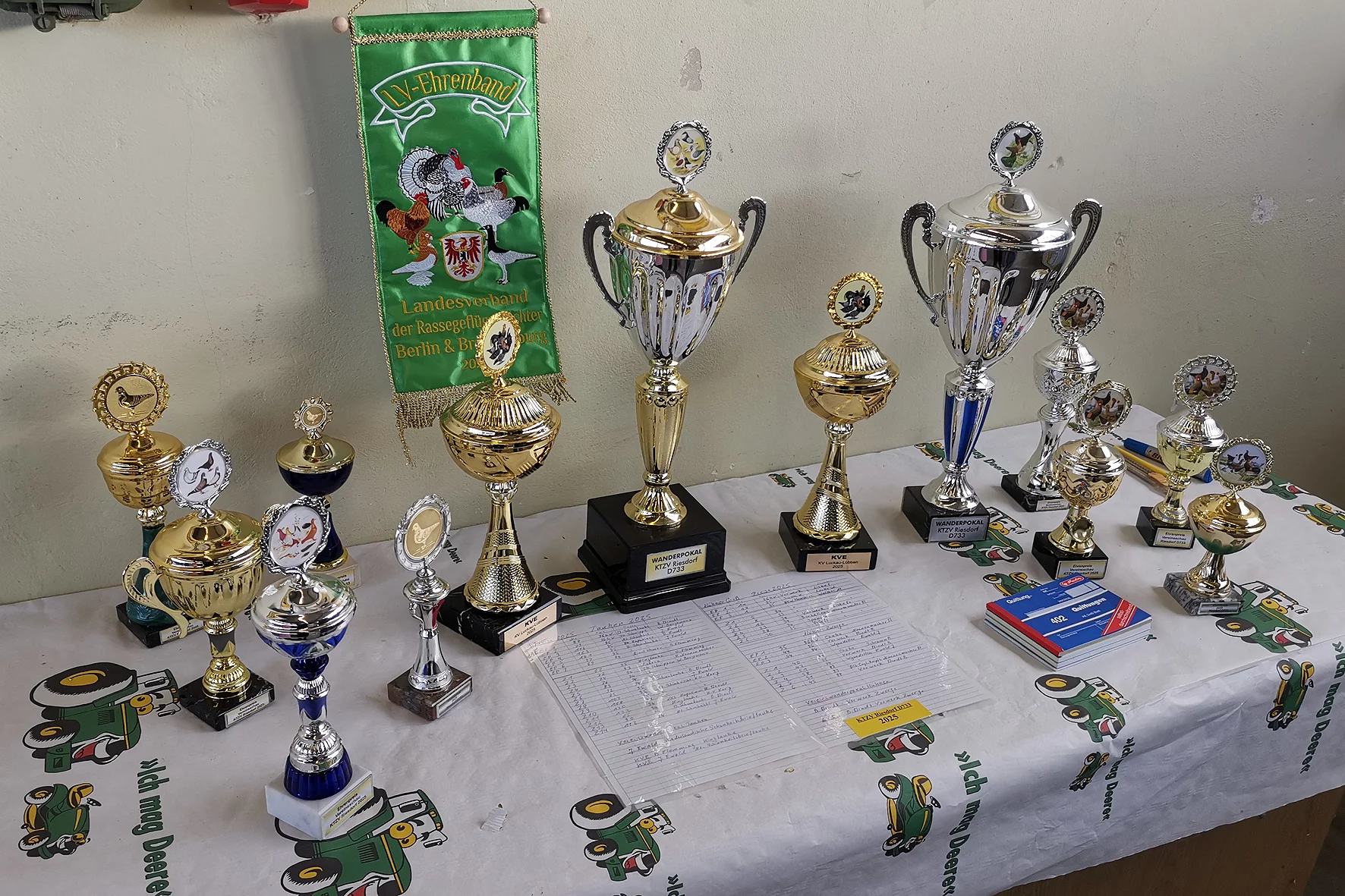 Das erschwert es Besuchern und Züchtern, sich einen umfassenden Überblick über die Ergebnisse zu verschaffen. Die Atmosphäre war dennoch angenehm. Die Frauen des Vereins hatten einen eigenen Stammtisch, was zur geselligen Stimmung beitrug. Selbst an die Details wurde gedacht – die Tischdecke war standesgemäß gewählt.
