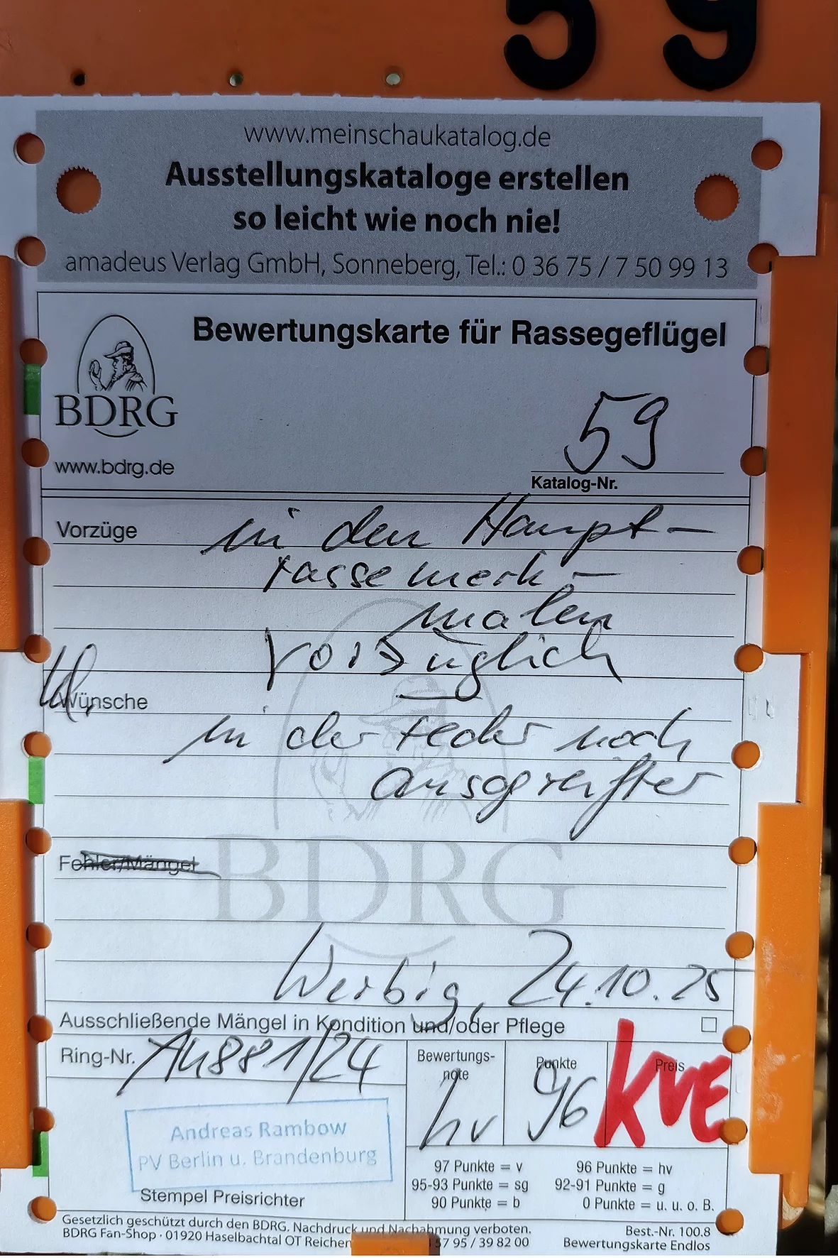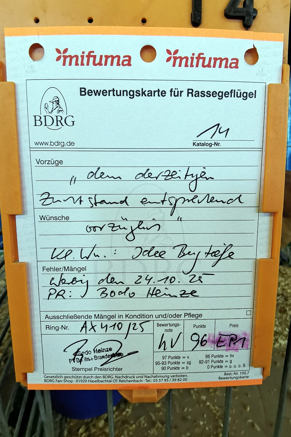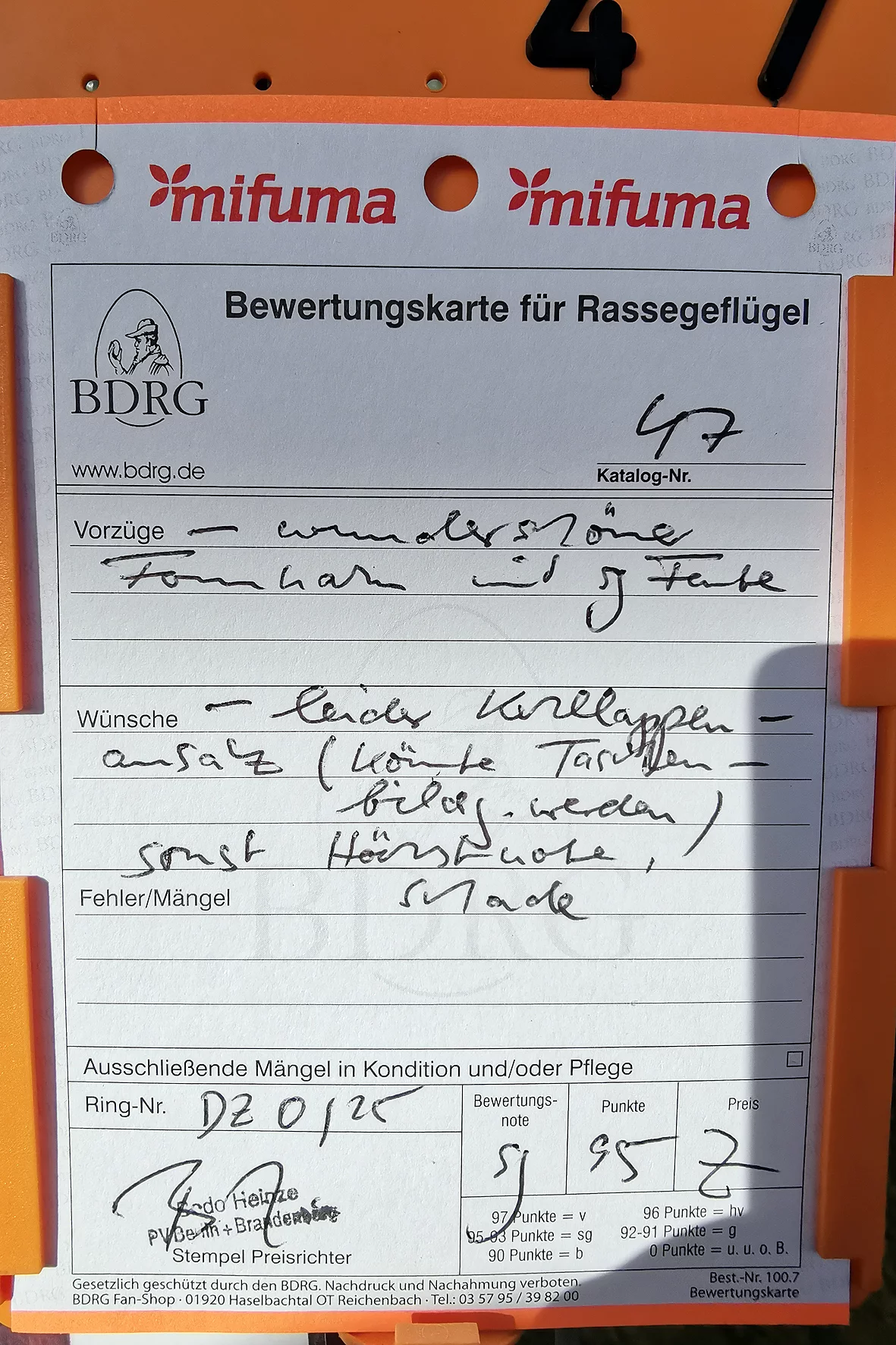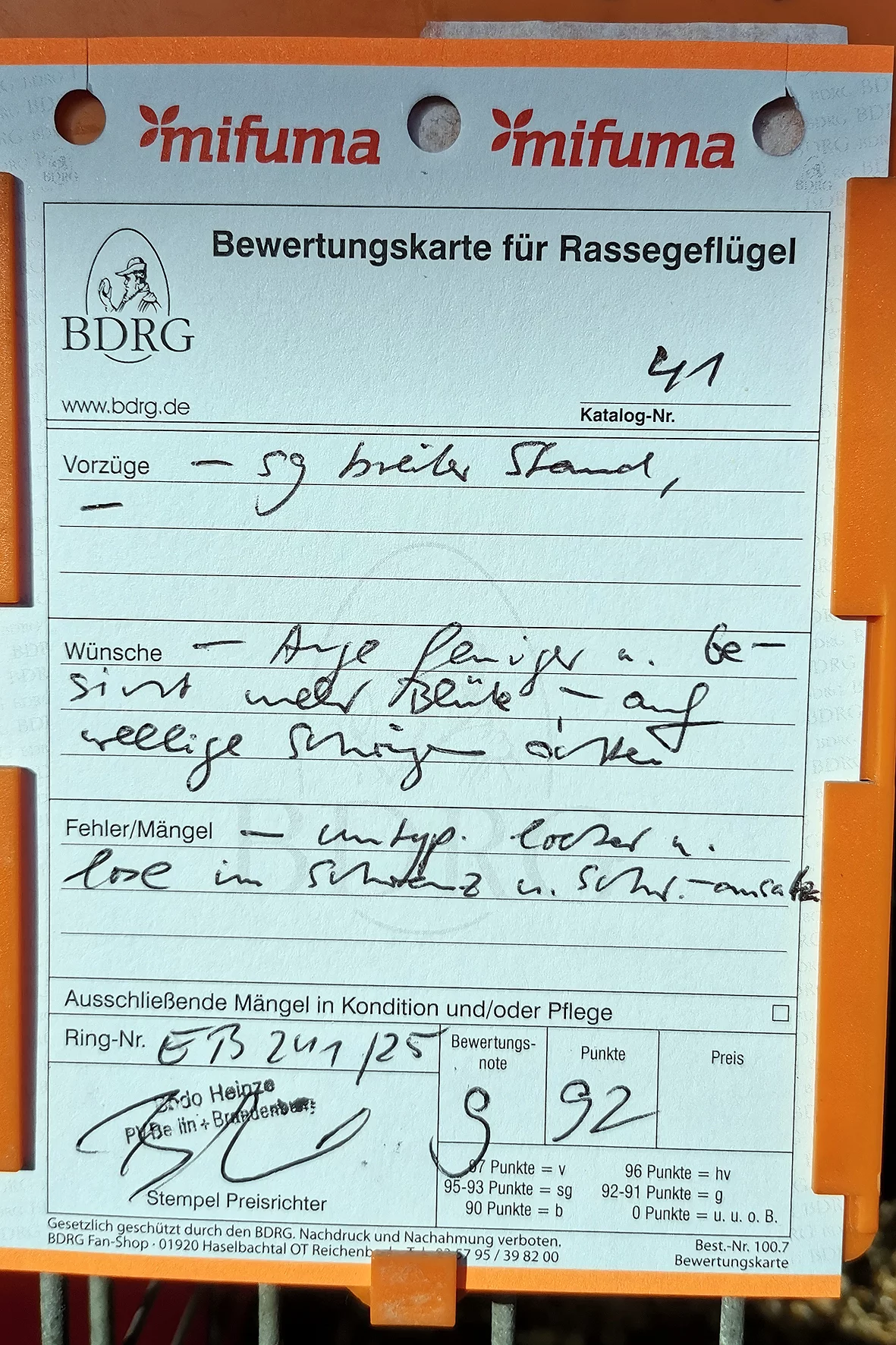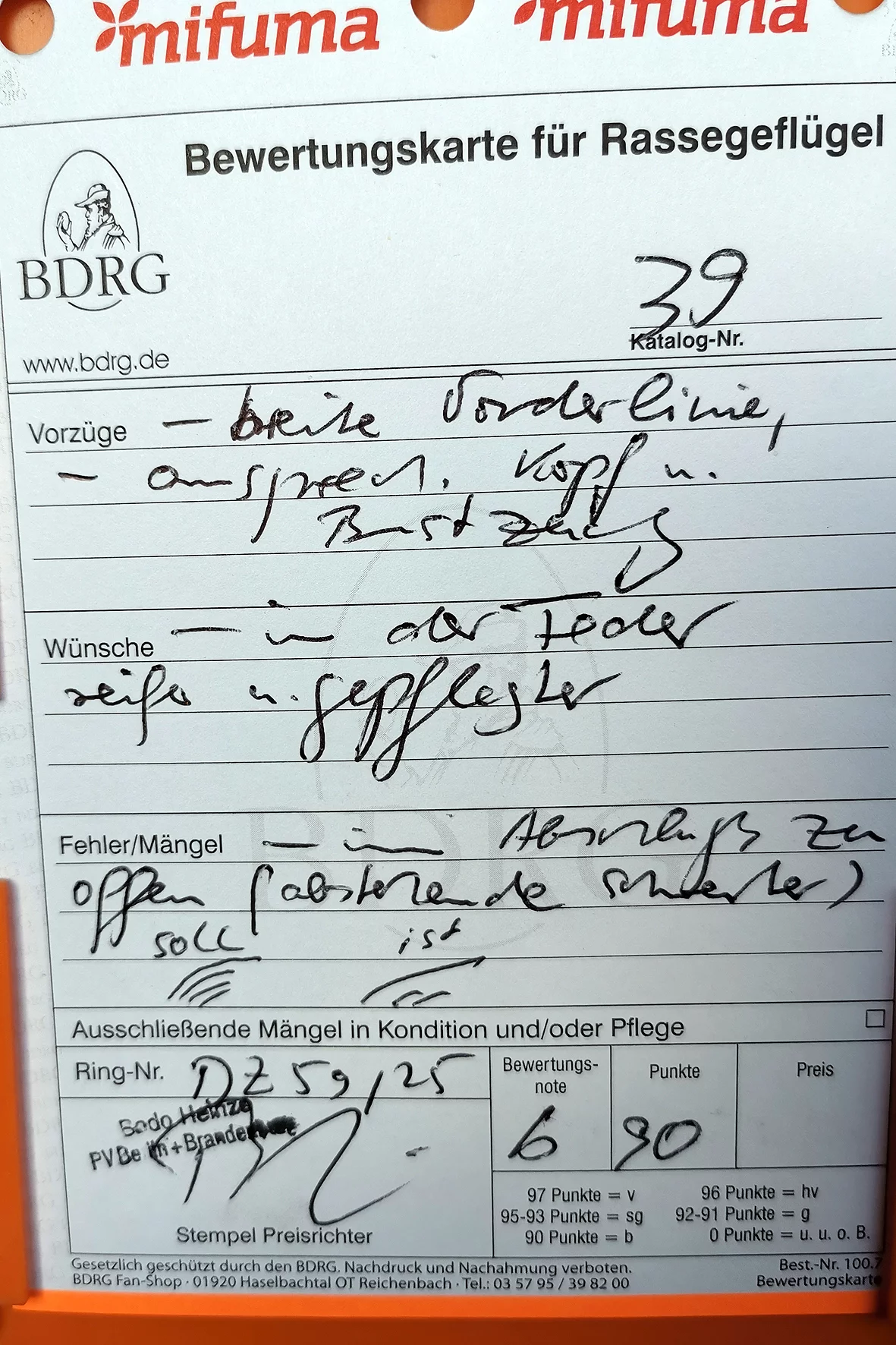 Weniger erfreulich war allerdings ein Tier, das auf einem Auge blind war. Solche Tiere sollten meiner Meinung nach nicht ausgestellt werden, da sie keine realistische Aussicht auf eine Bewertung haben und den Gesamteindruck der Schau unnötig schmälern. Etwas schade war, dass es nur ein Züchterverzeichnis gab und kein vollständiger Bewertungskatalog zur Einsicht bereitstand.