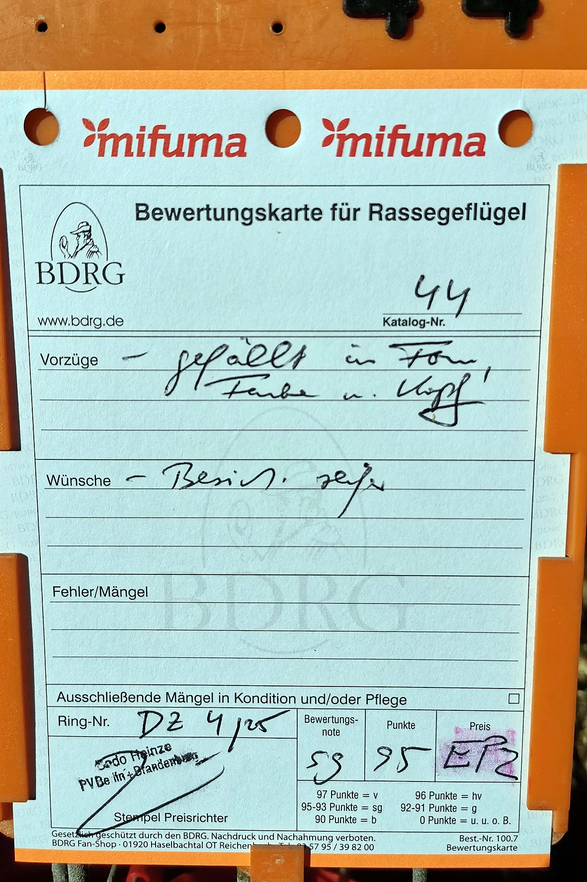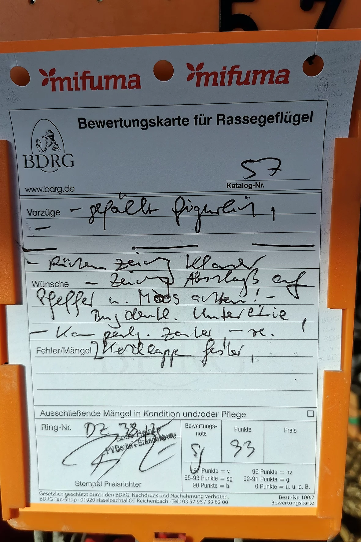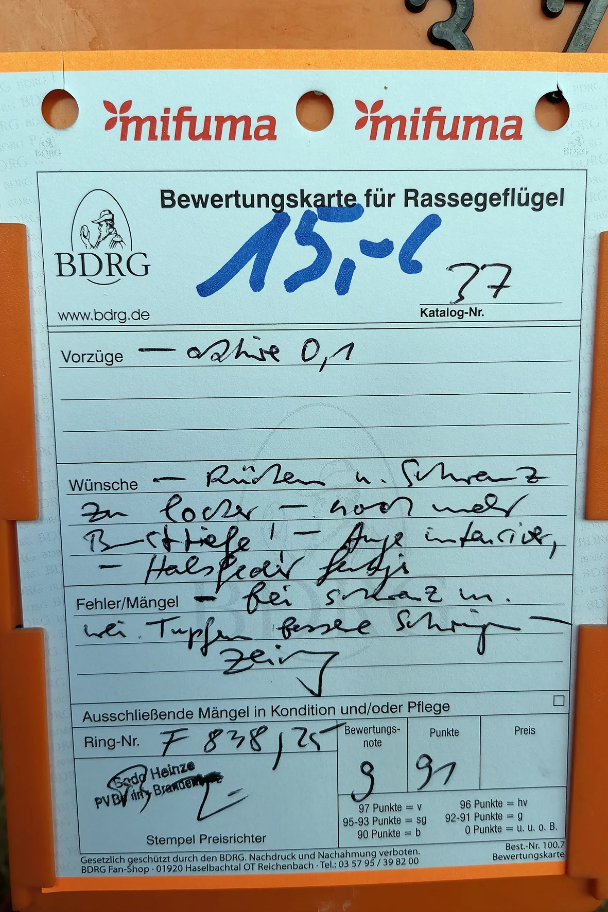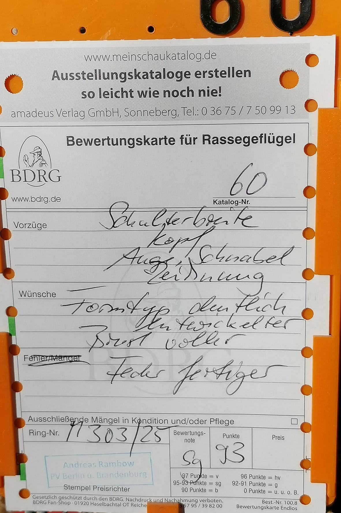 Weniger erfreulich war allerdings ein Tier, das auf einem Auge blind war. Solche Tiere sollten meiner Meinung nach nicht ausgestellt werden, da sie keine realistische Aussicht auf eine Bewertung haben und den Gesamteindruck der Schau unnötig schmälern. Etwas schade war, dass es nur ein Züchterverzeichnis gab und kein vollständiger Bewertungskatalog zur Einsicht bereitstand.