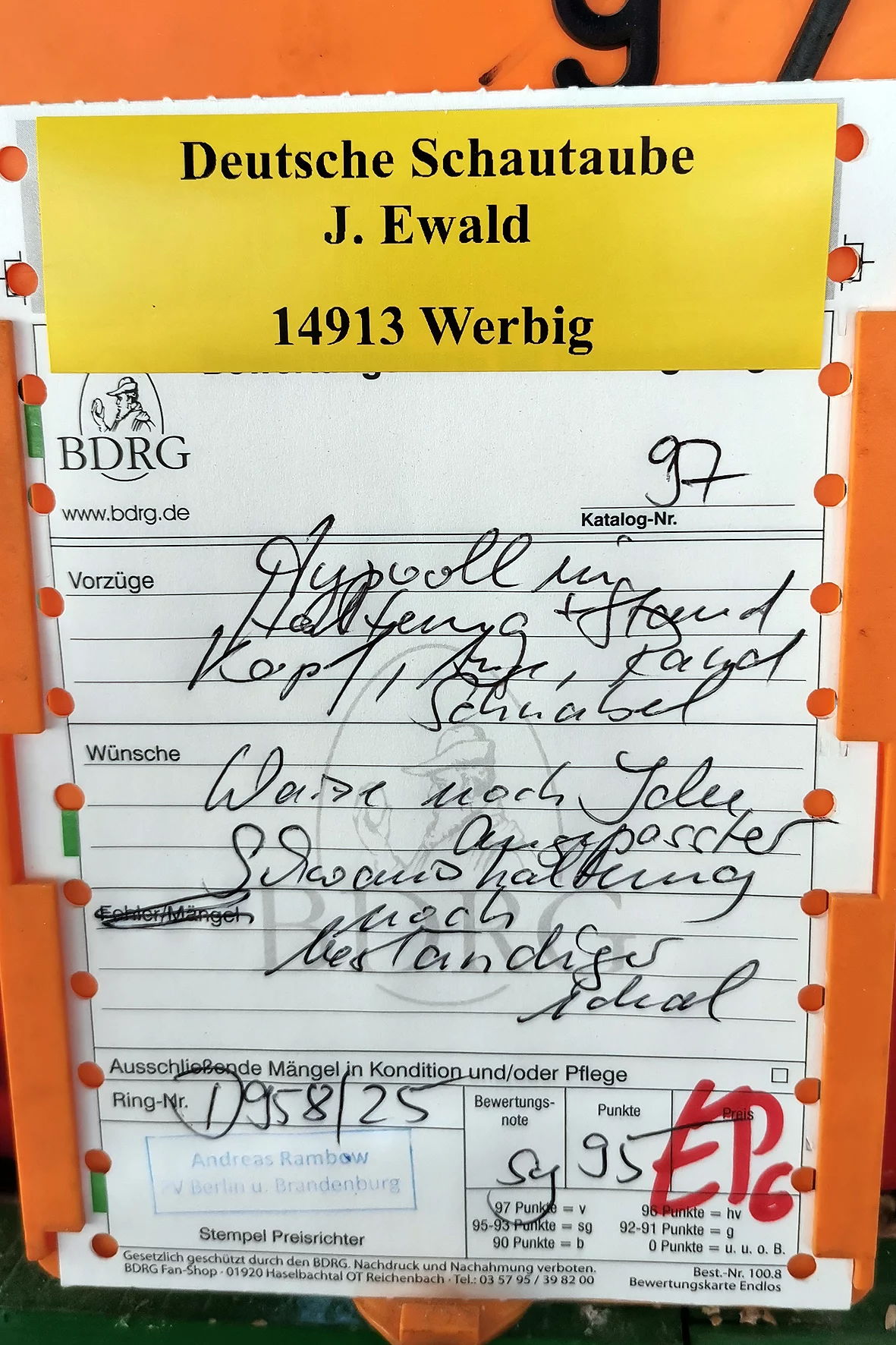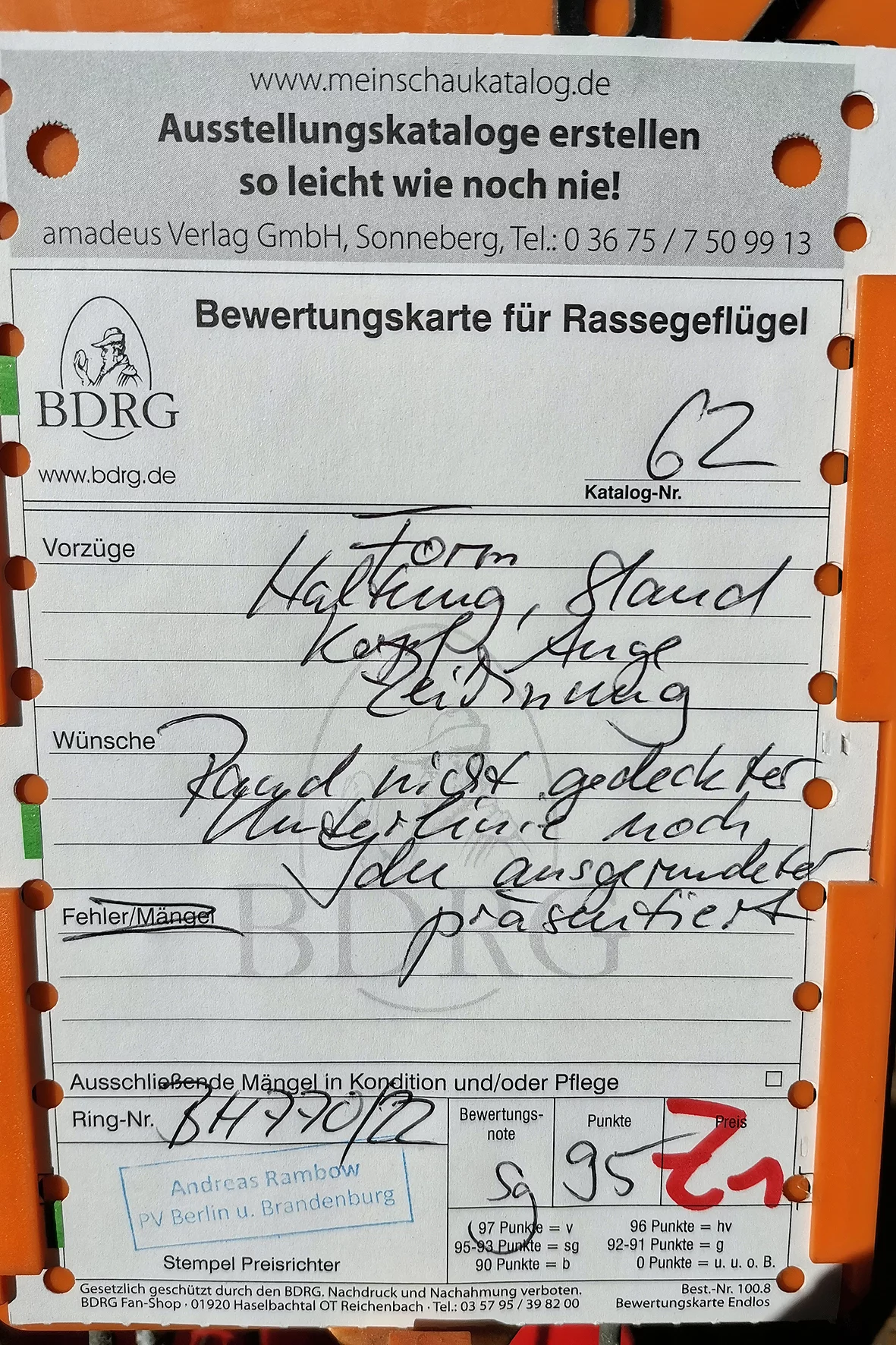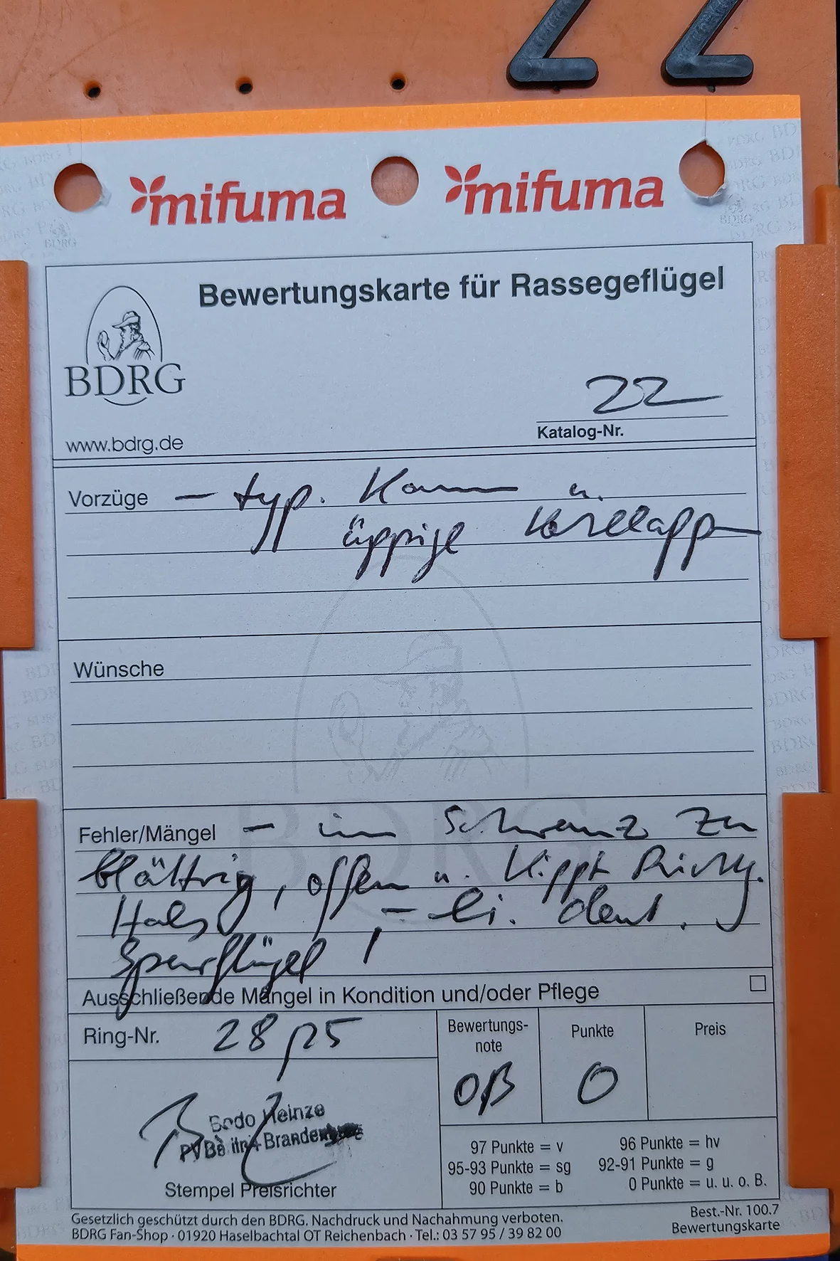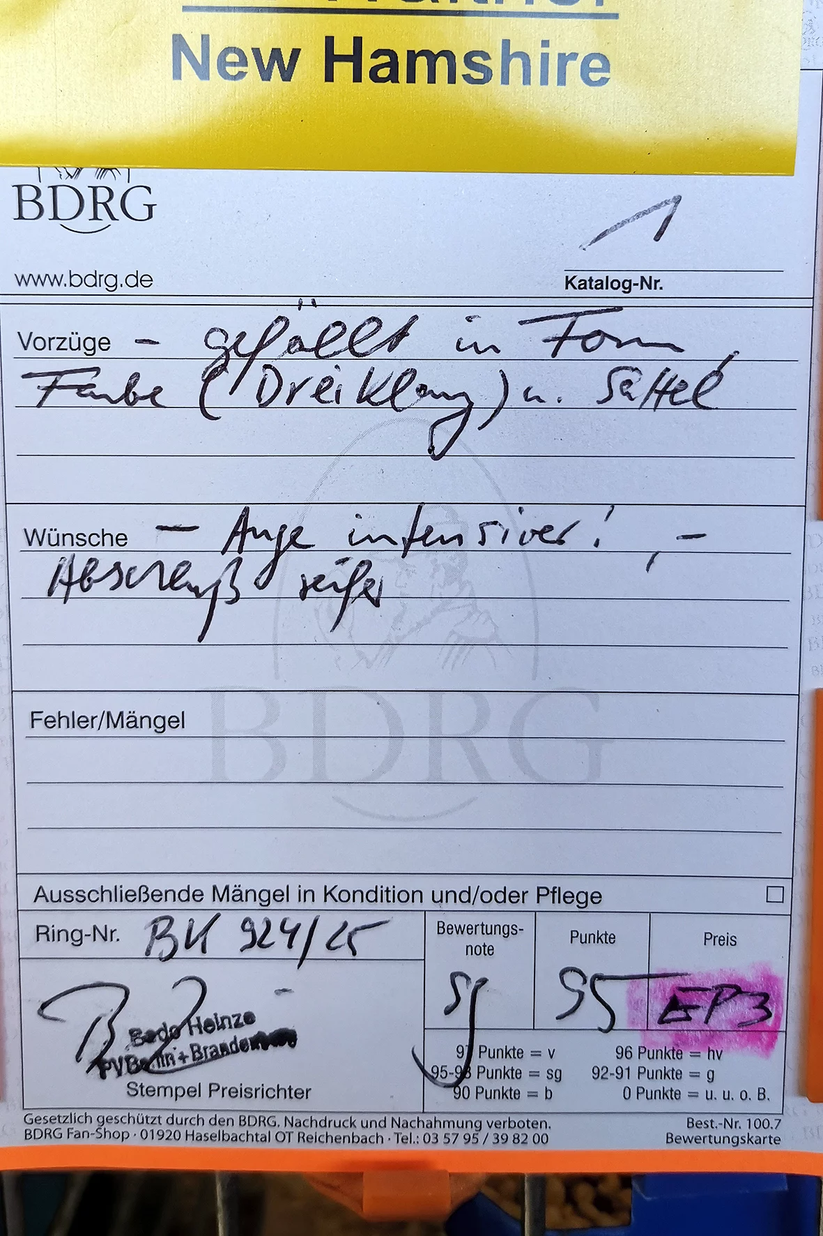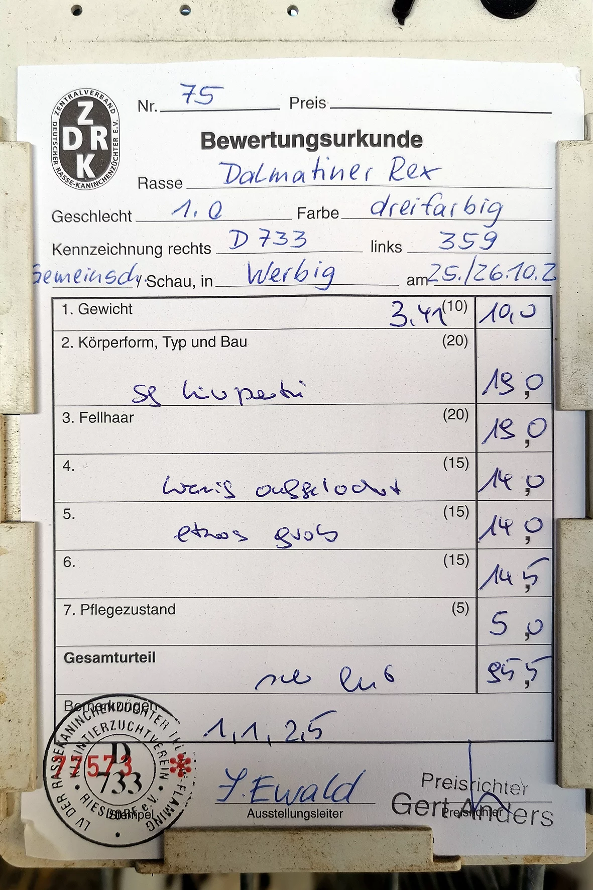 Weniger erfreulich war allerdings ein Tier, das auf einem Auge blind war. Solche Tiere sollten meiner Meinung nach nicht ausgestellt werden, da sie keine realistische Aussicht auf eine Bewertung haben und den Gesamteindruck der Schau unnötig schmälern. Etwas schade war, dass es nur ein Züchterverzeichnis gab und kein vollständiger Bewertungskatalog zur Einsicht bereitstand.