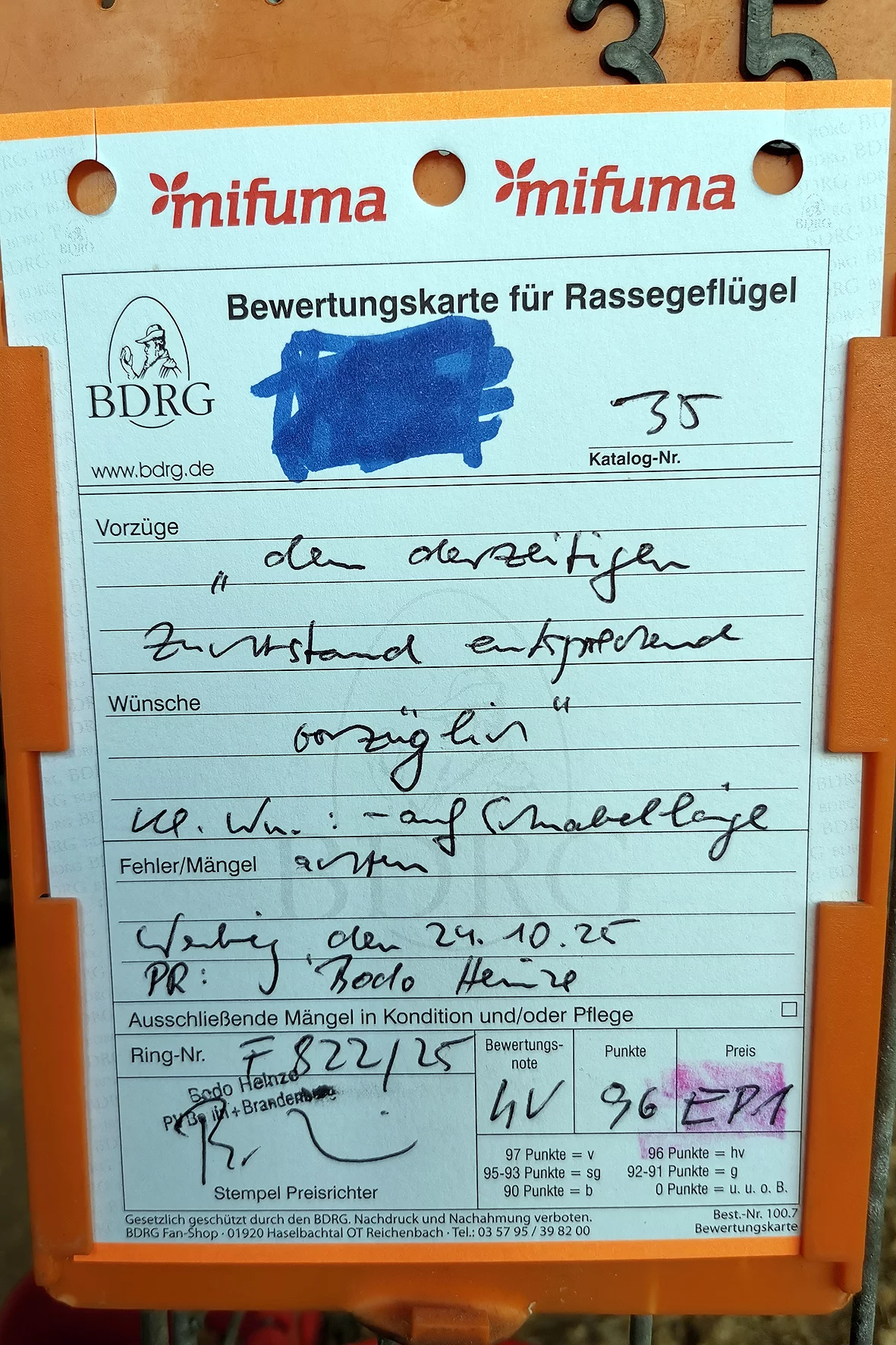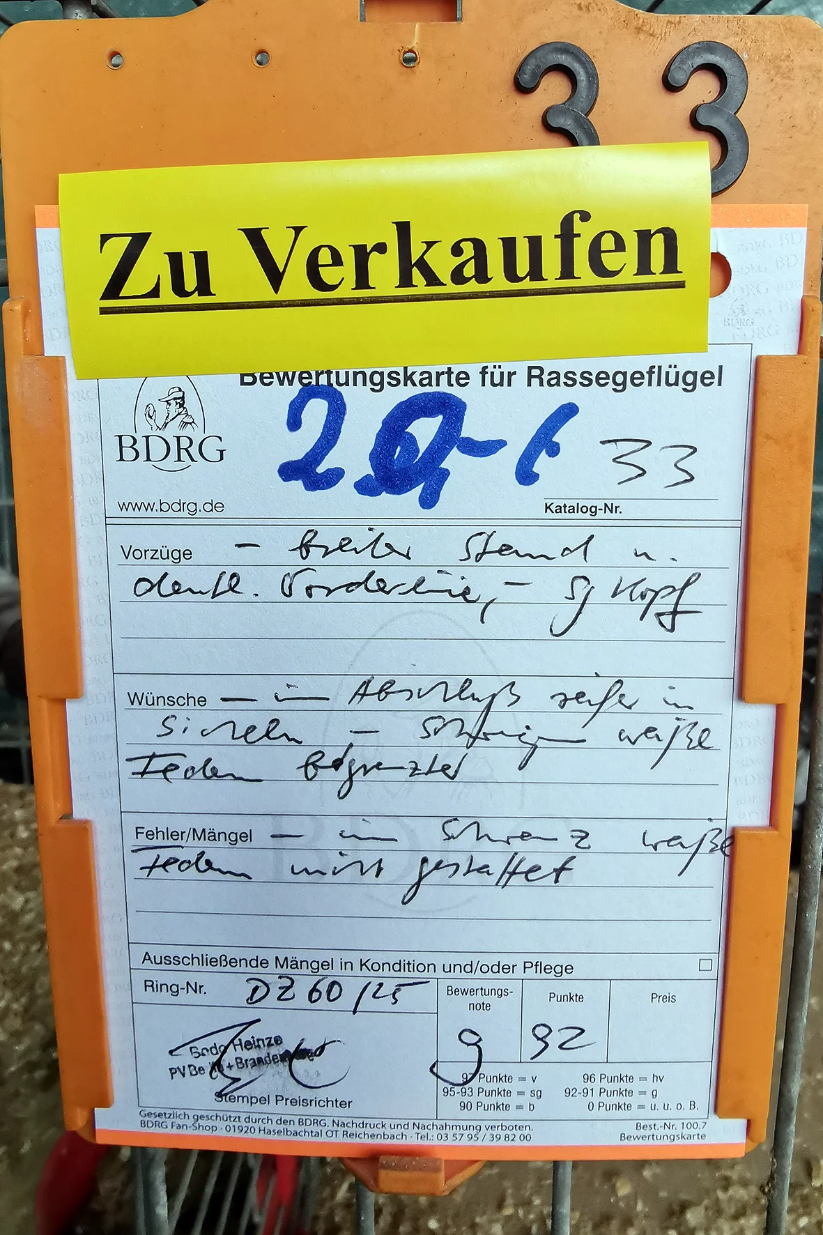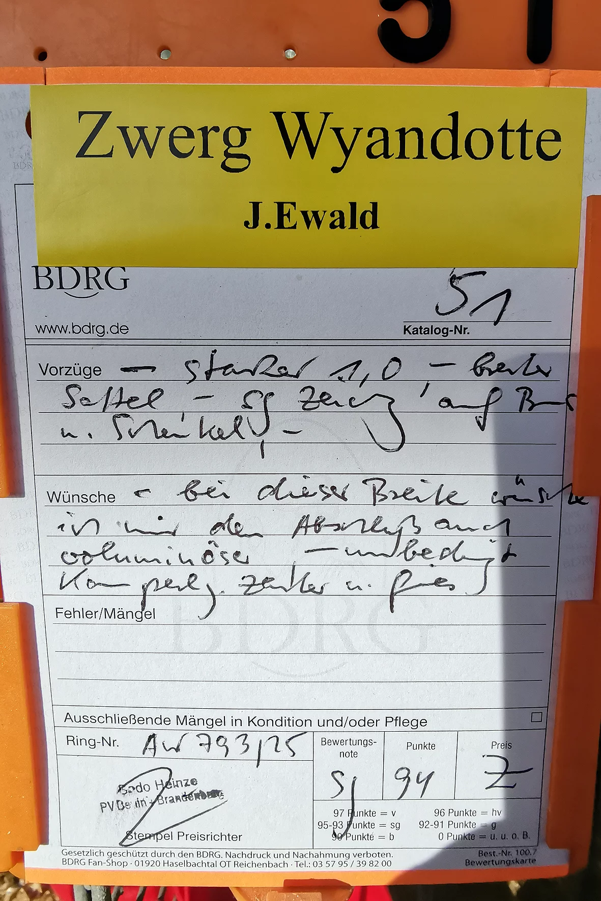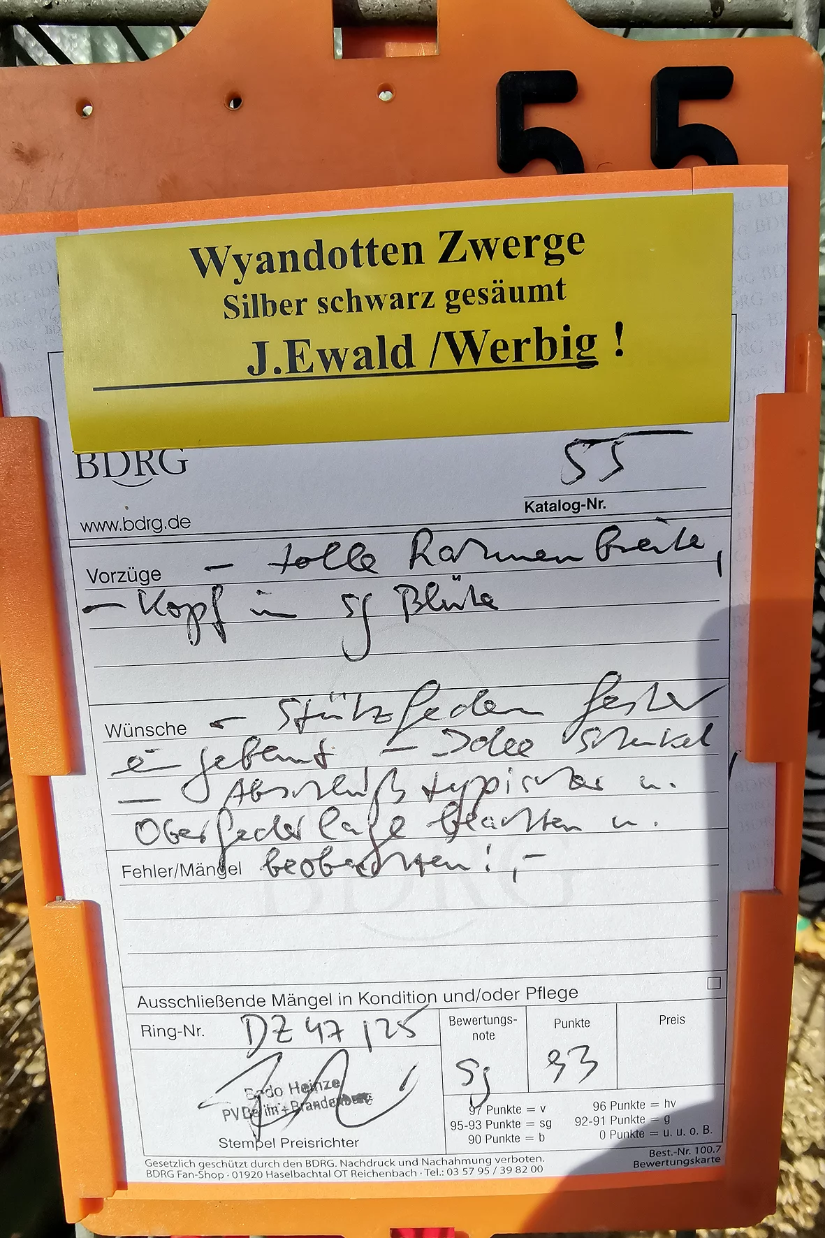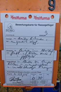 Besonders positiv aufgefallen ist mir eine Vorwerkhenne, die mit der Note HV 96 bewertet wurde. Sie zeigte sich in bester Verfassung und überzeugte durch Typ, Gefieder und Gesamteindruck. Auch bei den Zwergtieren konnten erneut die Vorwerkhühner durch ihr gleichmäßiges Auftreten und ihre Qualität punkten.