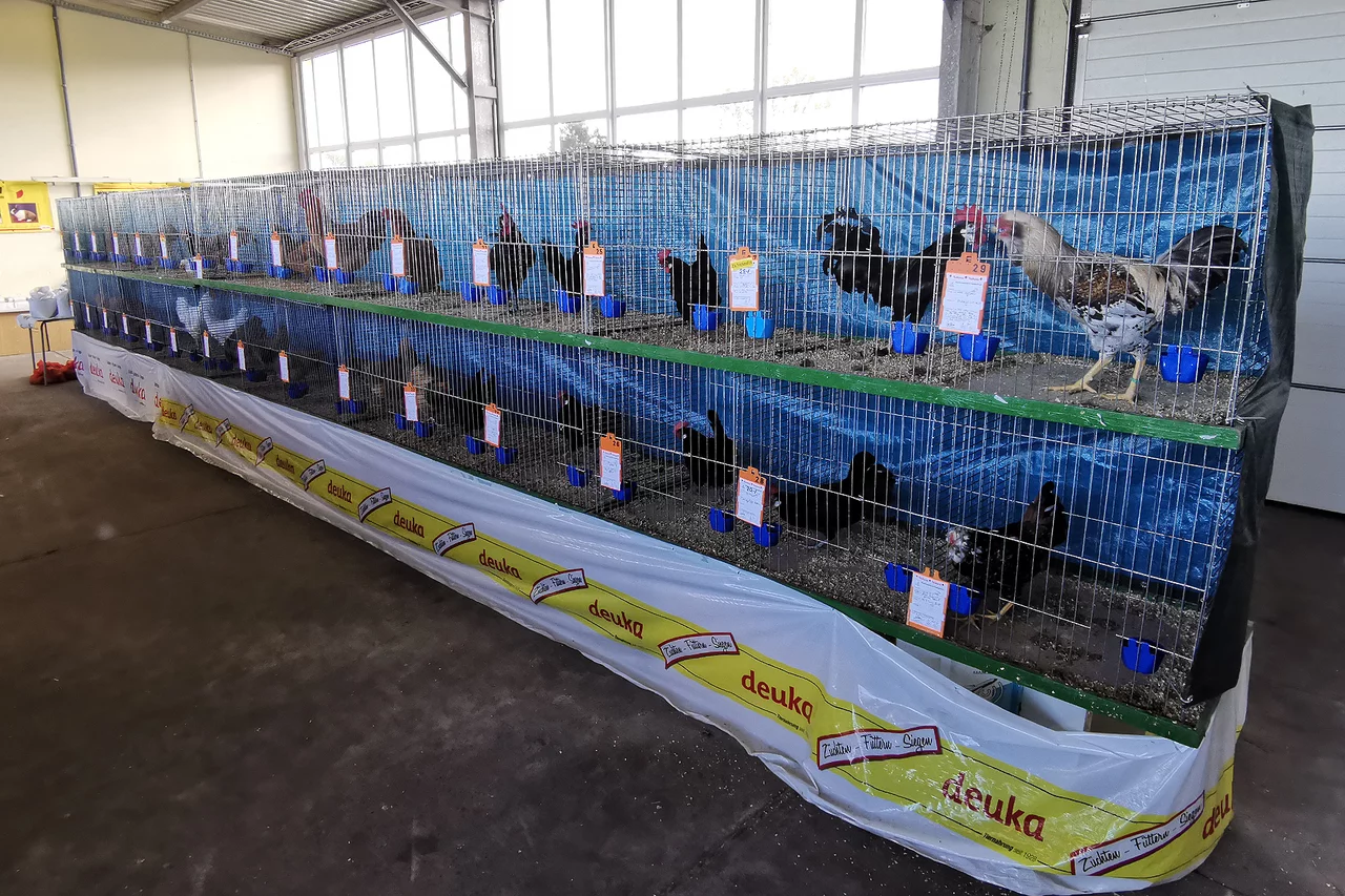 Die Vereinsschau des KTZV Riesdorf war der erste Stopp auf unserer diesjährigen Ausstellungstour. Die Veranstaltung fand in einer großen Halle mit Vorraum statt, in der insgesamt 58 Hühner präsentiert wurden. Davon waren 30 Hühner und 28 Zwerghühner gemeldet – eine solide Beteiligung für eine Vereinsschau dieser Größe.