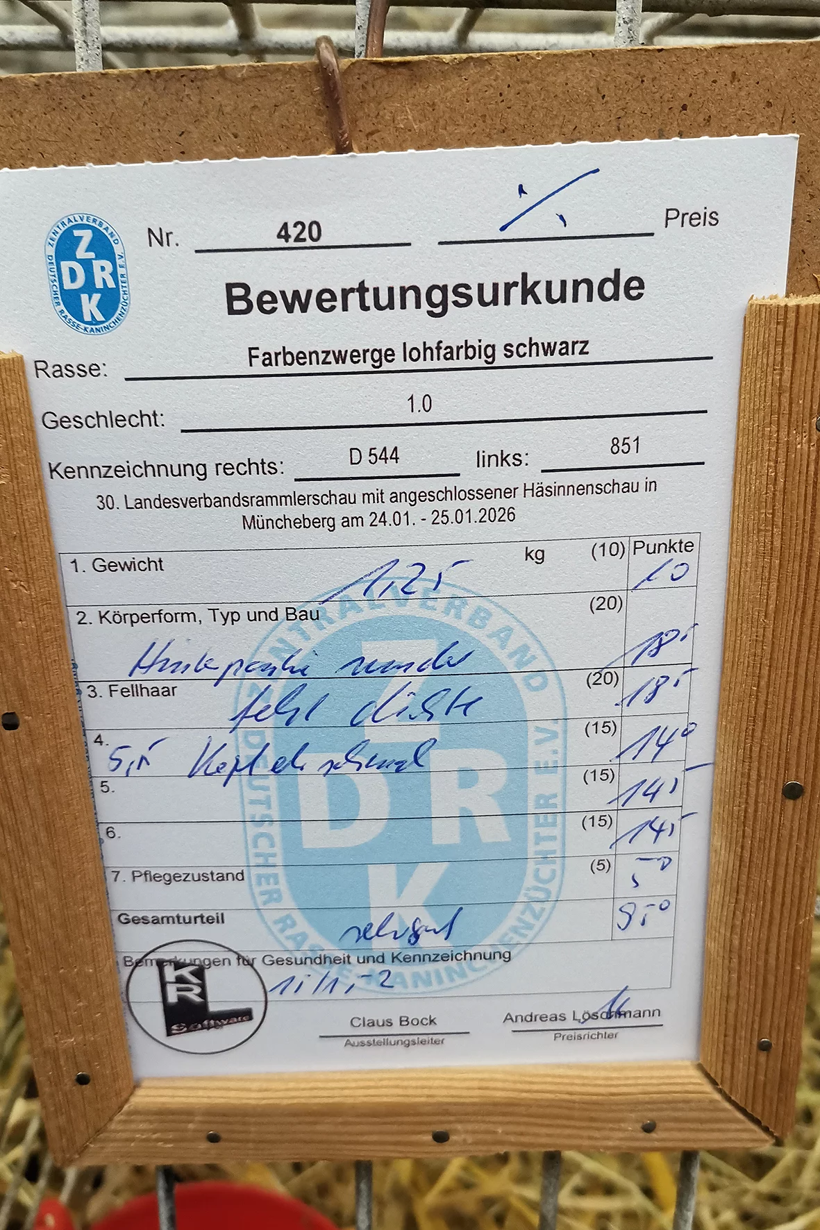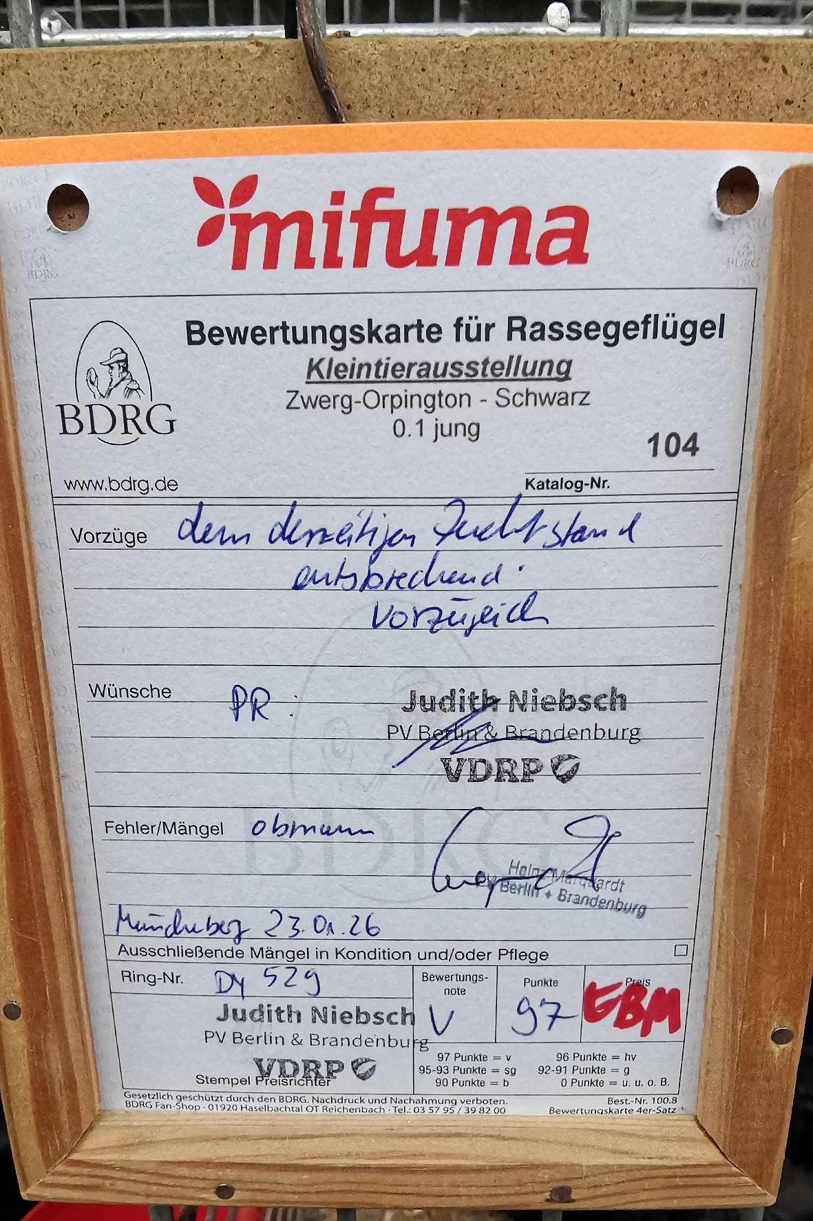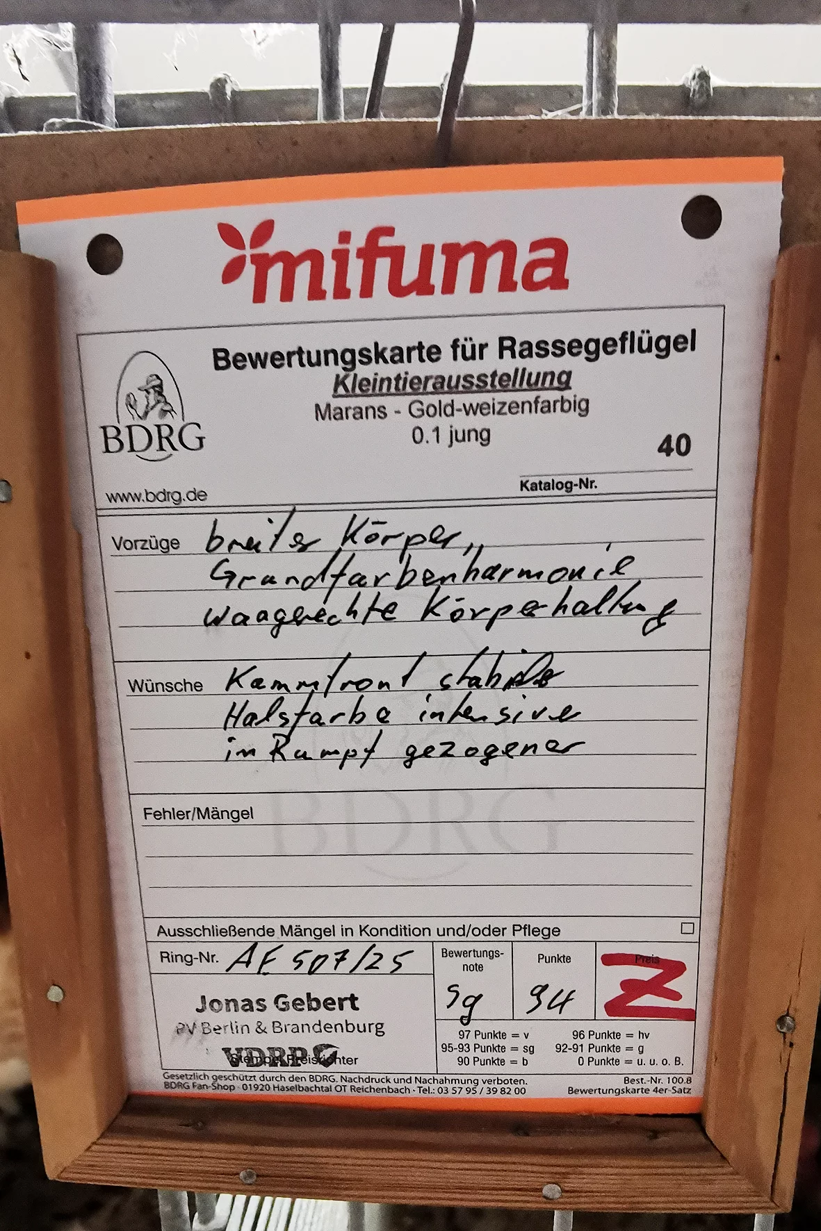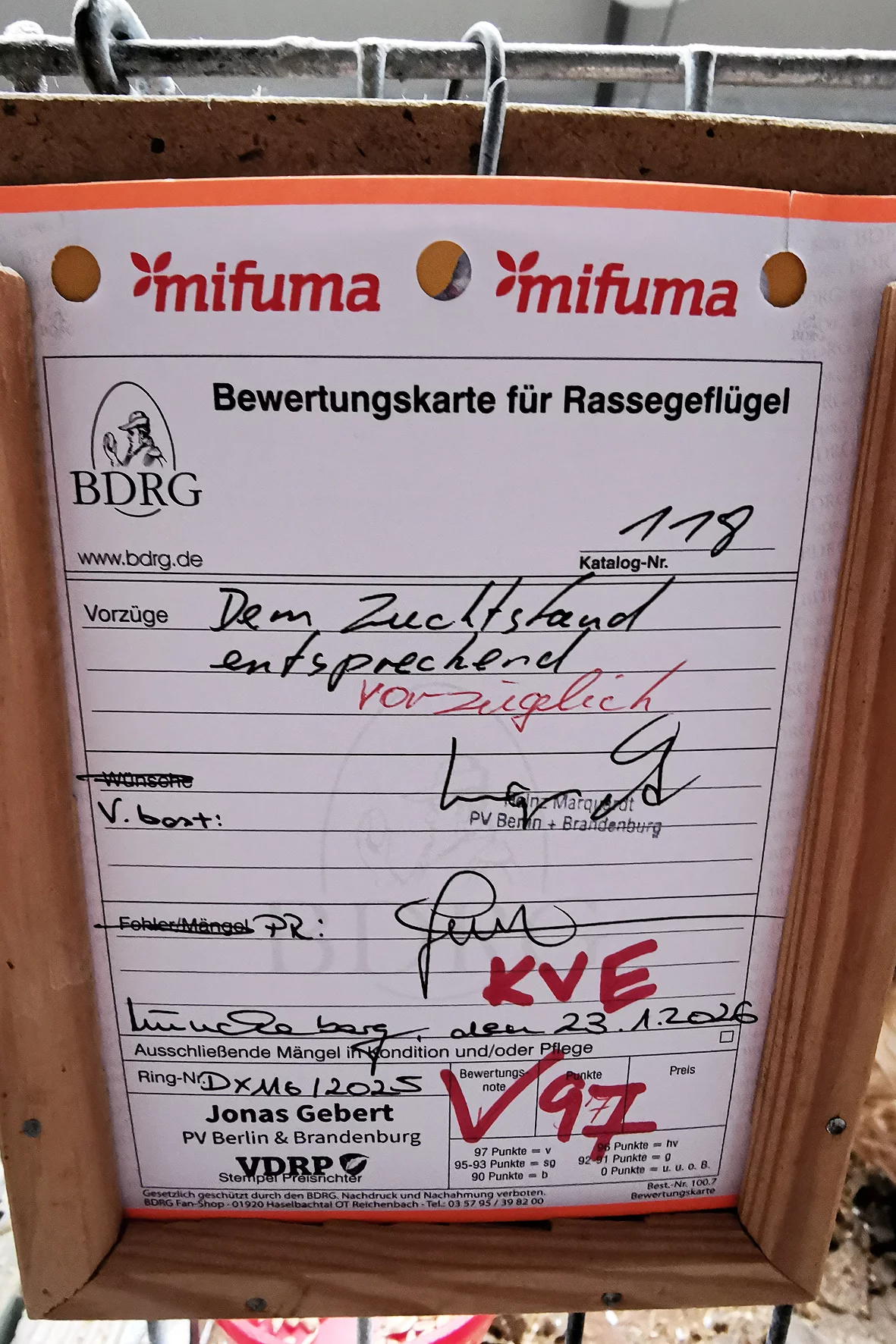 Gleichzeitig hat die Schau deutlich gemacht, dass Terminverschiebungen unmittelbare Auswirkungen auf die Qualität und Bewertbarkeit der (meiner) Tiere haben. Dies sollte bei zukünftigen Bewertungen stärker berücksichtigt werden. Auch kleinere organisatorische Punkte, wie die Kontrolle des Einstreus, verdienen mehr Aufmerksamkeit.