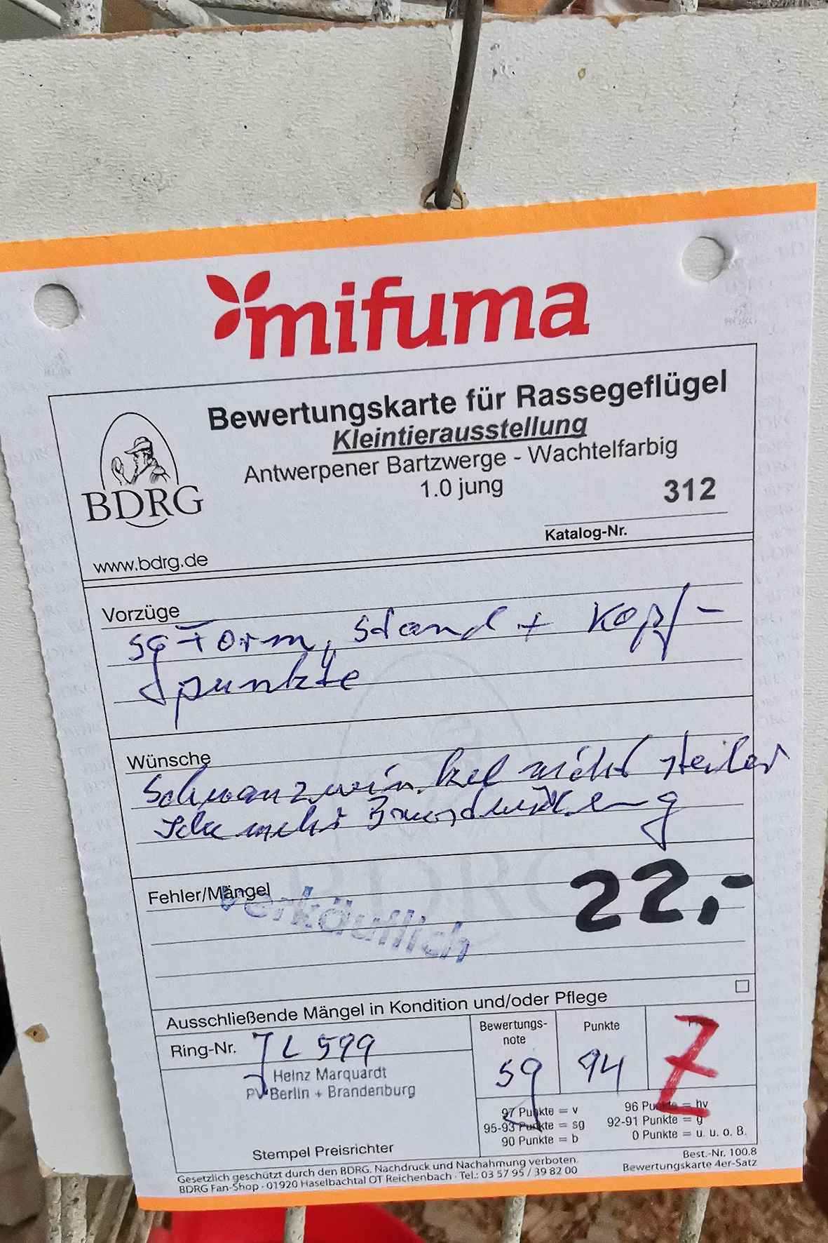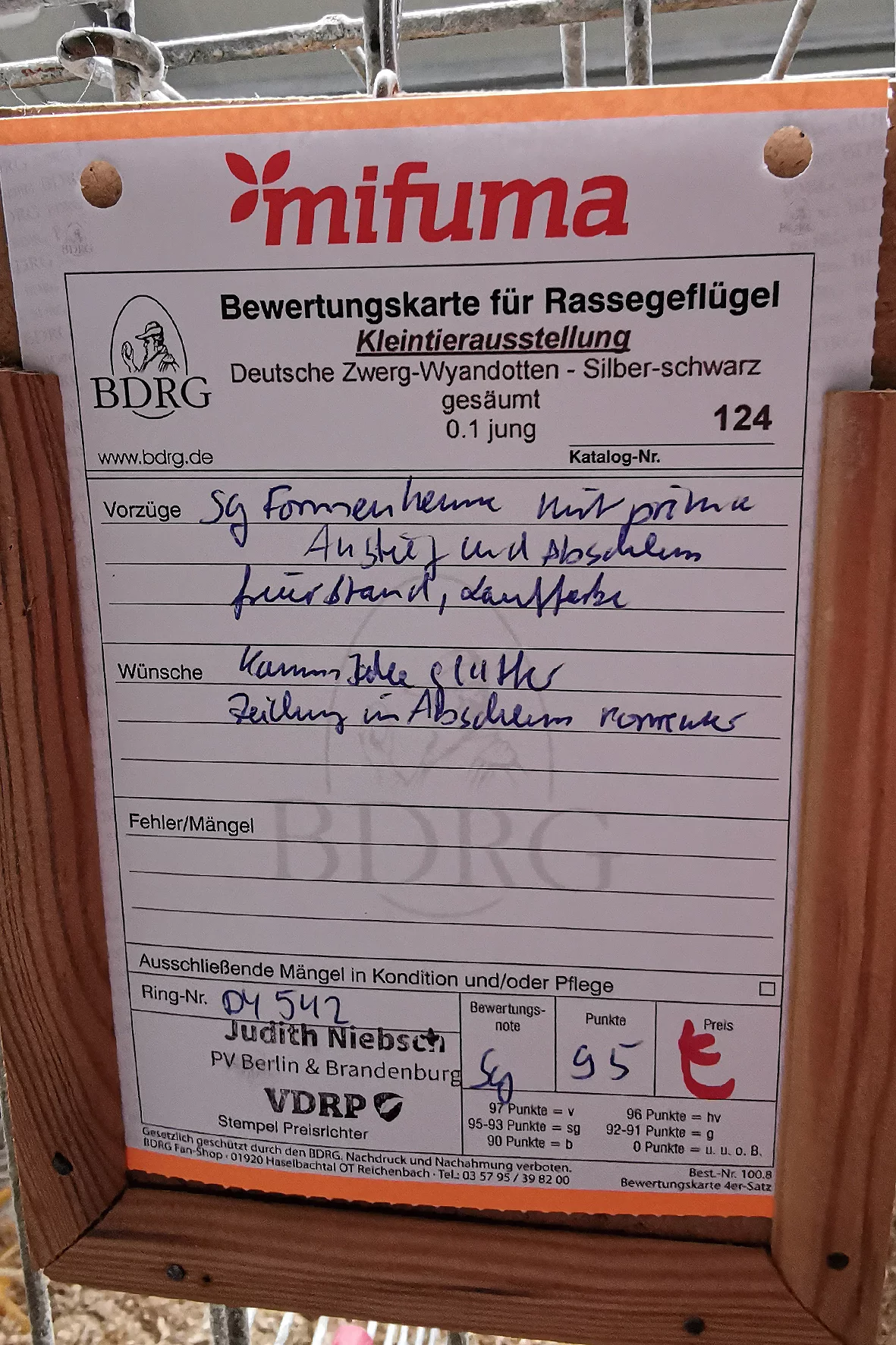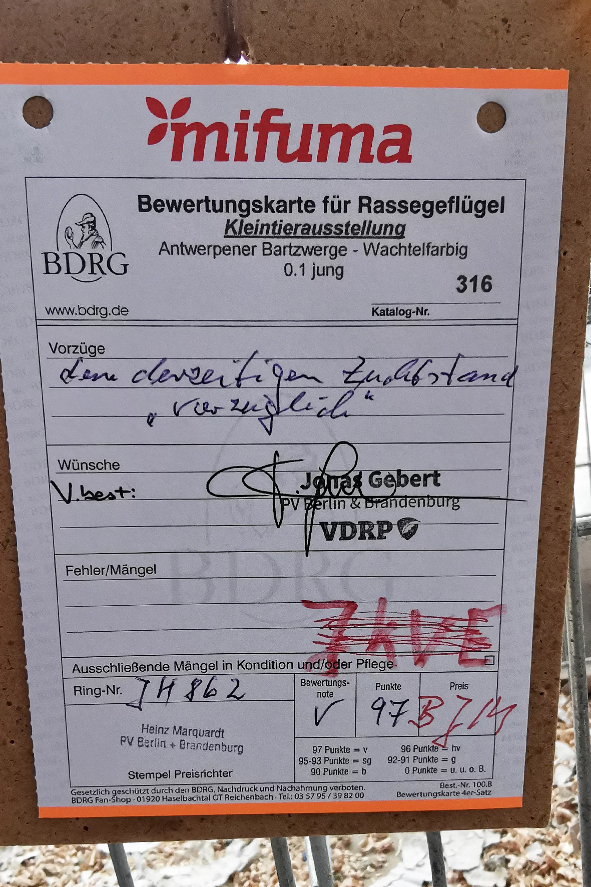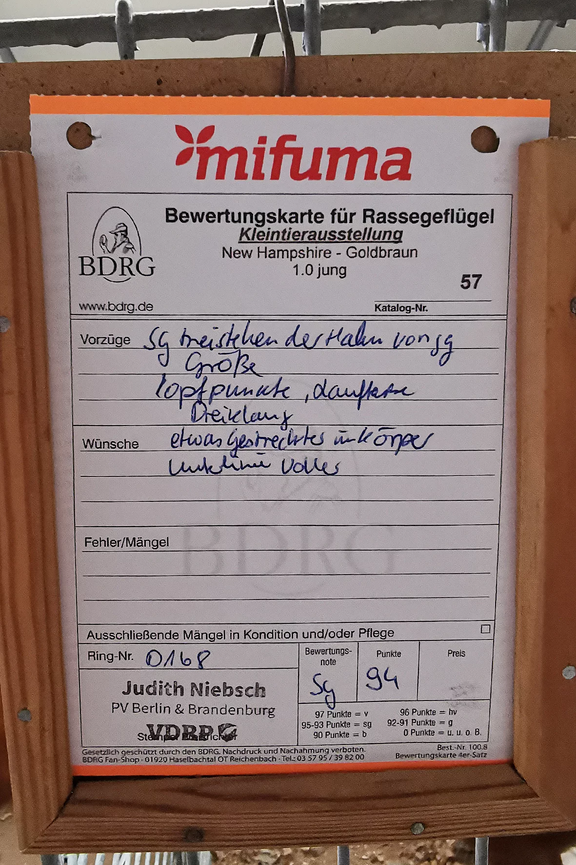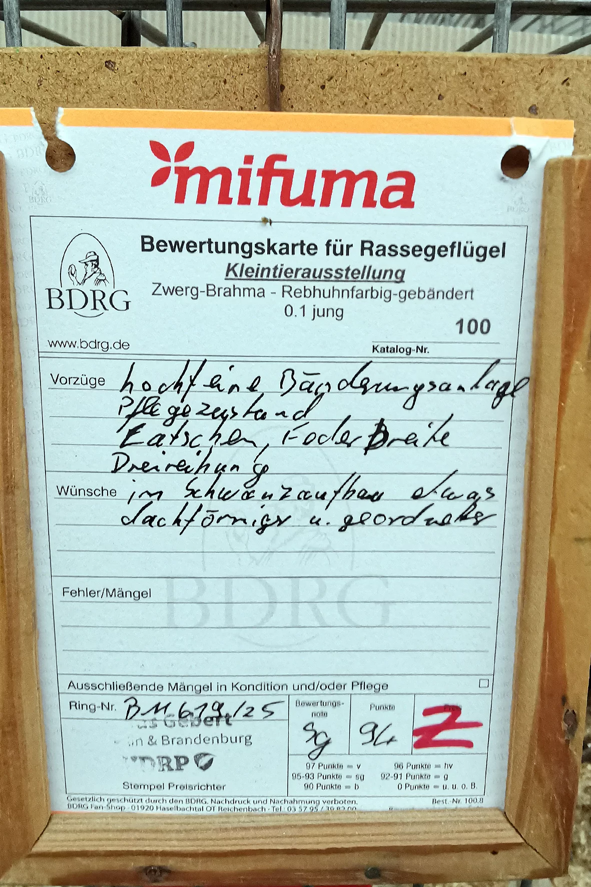 Gleichzeitig hat die Schau deutlich gemacht, dass Terminverschiebungen unmittelbare Auswirkungen auf die Qualität und Bewertbarkeit der (meiner) Tiere haben. Dies sollte bei zukünftigen Bewertungen stärker berücksichtigt werden. Auch kleinere organisatorische Punkte, wie die Kontrolle des Einstreus, verdienen mehr Aufmerksamkeit.